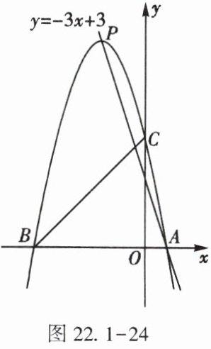 15. (★★) (2023·凉山改编) 如图 22.1 - 24,已知抛物线与 $ x $ 轴交于 $ A(1,0) $ 和 $ B(-5,0) $ 两点,与 $ y $ 轴交于点 $ C $. 直线 $ y = -3x + 3 $ 过抛物线的顶点 $ P $.