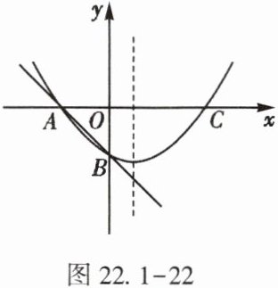 13. (★★) 如图 22.1 - 22,在平面直角坐标系中,直线 $ y = -x - 2 $ 与 $ x $ 轴交于点 $ A $,与 $ y $ 轴交于点 $ B $,抛物线 $ y = ax^{2}+bx + c $ $ (a \gt 0) $ 经过 $ A $, $ B $ 两点,并与 $ x $ 轴的正半轴交于点 $ C $.
