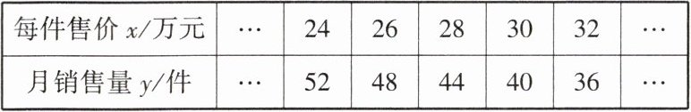 9. (★★★)(2023·盘锦)某工厂生产一种产品,经市场调查发现,该产品每月的销售量$y$(件)与每件售价$x$(万元)之间满足一次函数关系,部分数据如下表: