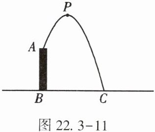 4. ($★★$)如图22.3 - 11,人工喷泉有一个竖直的喷水枪$AB$,喷水口$A距地面2m$,喷出水流的运动路线是抛物线,如果水流的最高点$P到喷水枪AB所在直线的距离为1m$,且到地面的距离为$3.6m$,求水流的落地点$C到水枪底部B$的距离。
