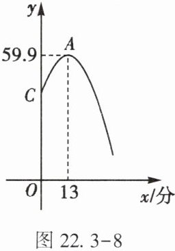 10. (★★★)(2023·郑州模拟)心理学研究表明,学生上课对概念的接受能力$y与讲授概念的时间x$(分)之间的关系是二次函数,如图22.3 - 8是$y与x$之间的函数图象,点$A$是该抛物线的顶点,且$OC = 43$.