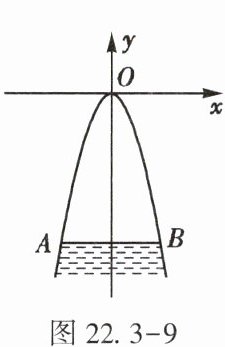 2. ($★$)某涵洞是抛物线形,它的截面如图22.3 - 9,现测得水面宽$AB = 1.6m$,涵洞顶点$O到水面的距离为2.4m$,在图中直角坐标系内,涵洞所在抛物线的函数表达式是