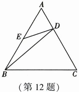 12. 如图,在等边三角形$ABC$中,点$D$,$E分别在AC$,$AB$上,且$\frac{AD}{AC}= \frac{1}{3}$,$AE = BE$,则与$\angle ADE$相等的角是