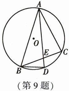 9. 如图,$\odot O是\triangle ABC$的外接圆,已知$AD平分\angle BAC交\odot O于点D$,交$BC边于点E$,$AD = 5$,$BD = 2$,则$DE$的长为(