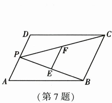 7. 如图,$P为□ ABCD的边AD$上的一点,$E$,$F分别为PB$,$PC$的中点,$\triangle PEF$,$\triangle PDC$,$\triangle PAB的面积分别为S$,$S_1$,$S_2$。若$S = 3$,则$S_1 + S_2$的值为(