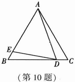 10. (2023·东营)如图,$\triangle ABC$为等边三角形,点$D$,$E分别在边BC$,$AB$上,$\angle ADE = 60^{\circ}$。若$BD = 4DC$,$DE = 2.4$,则$AD$的长为(