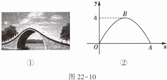 (1) 按图 22 - 10②所示建立平面直角坐标系,求桥拱部分所在抛物线的函数表达式;