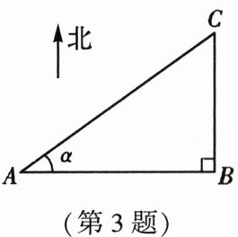 3. (2023·南充)如图,小兵同学从 $A$ 处出发向正东方向走 $x$ 米到达 $B$ 处,再向正北方向走到 $C$ 处,已知$\angle BAC= \alpha$,则 $A$,$C$ 两处相距 (