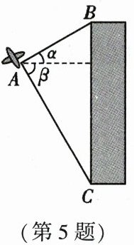 5. (2023·南通)如图,从航拍无人机 $A$ 看一栋楼顶部 $B$ 的仰角 $\alpha$ 为 $30^{\circ}$,看这栋楼底部 $C$ 的俯角 $\beta$ 为 $60^{\circ}$,无人机与楼的水平距离为 $120$ m,则这栋楼的高度为 (