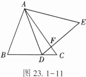 14. (★★)如图 23.1 - 11,在 △ABC 中,∠BAC = 55°,将 △ABC 逆时针旋转 α(0° < α < 55°)得到 △ADE,DE 交 AC 于点 F. 当 α = 40°时,点 D 恰好落在 BC 上,此时 ∠AFE 的度数为