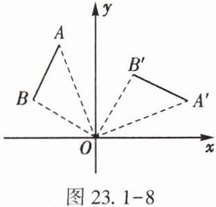10. (★★)如图 23.1 - 8,将线段 AB 绕点 O 顺时针旋转 90°得到线段 A'B',那么 A(-2,5)的对应点 A'的坐标是【
