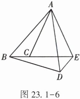 8. (★★)(2023·天津)如图 23.1 - 6,把 △ABC 以点 A 为中心逆时针旋转得到 △ADE,点 B,C 的对应点分别是点 D,E,且点 E 在 BC 的延长线上,连接 BD,则下列结论一定正确的是【