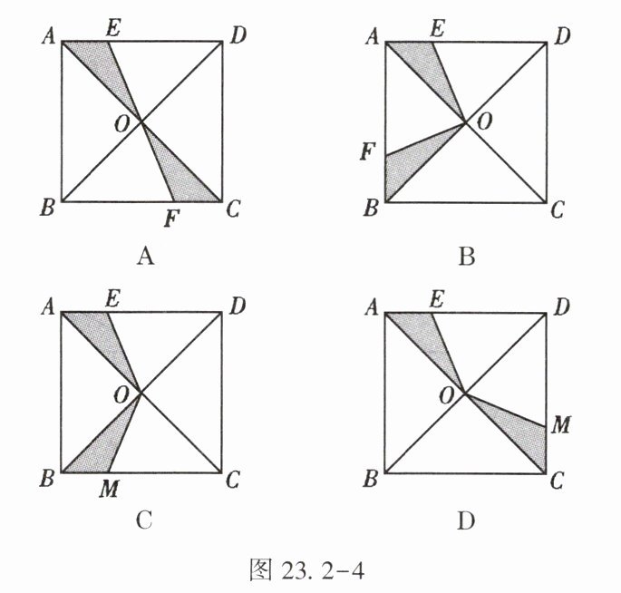 6. (★)如图 23.2 - 4,四边形$ABCD$是正方形,其中阴影部分两个三角形成中心对称的是【