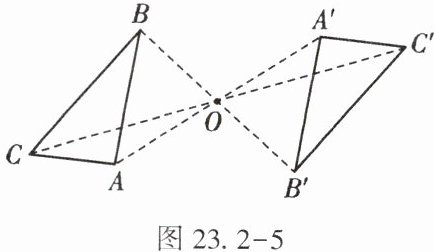 7. (★)如图 23.2 - 5,$\triangle ABC和\triangle A'B'C'关于点O$对称,则$BC和B'C'$的位置关系是