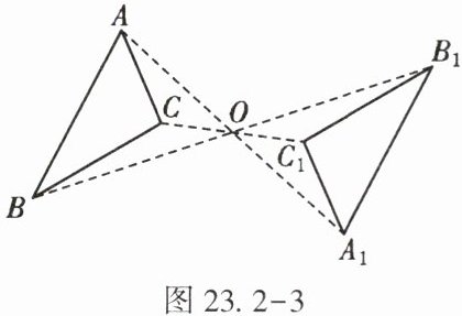 5. (★)如图 23.2 - 3,$\triangle ABC与\triangle A_{1}B_{1}C_{1}关于点O$成中心对称,有下列说法:①$∠BAC = ∠B_{1}A_{1}C_{1}$;②$AC = A_{1}C_{1}$;③$OA = OA_{1}$;④$\triangle ABC与\triangle A_{1}B_{1}C_{1}$的面积相等.其中正确的说法有【