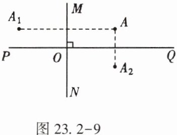 11. (★★)已知直线$MN\perp PQ$,垂足为$O$,点$A_{1}和点A关于MN$对称,点$A_{2}和点A关于PQ$对称,如图 23.2 - 9,试证明点$A_{1}和点A_{2}关于点O$成中心对称.