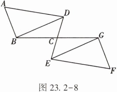 10. (★)如图 23.2 - 8,若四边形$ABCD与四边形FGCE$成中心对称,则它们的对称中心是点