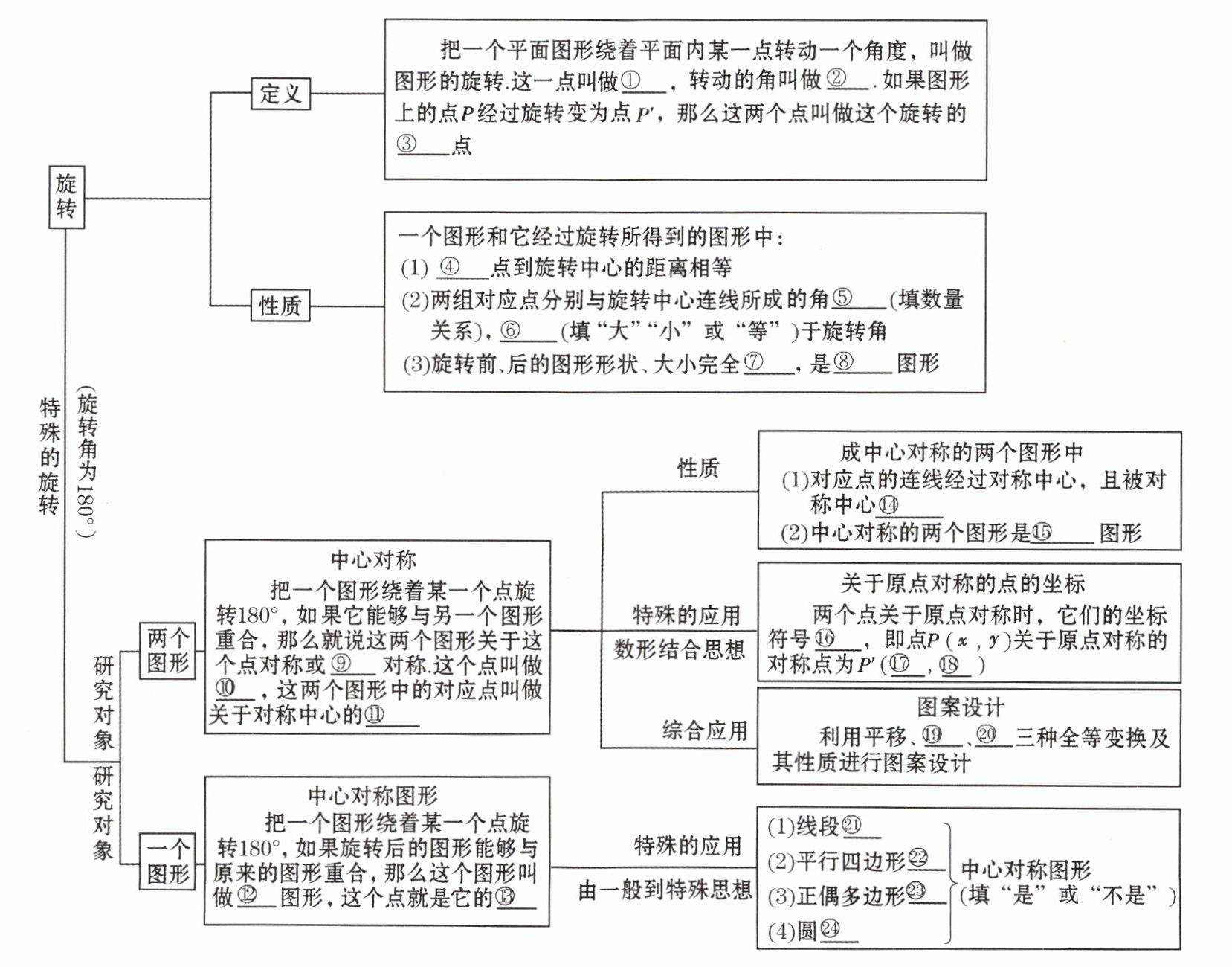 3. ⑨中心;⑩对称中心;⑪对称点;