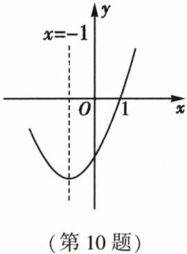 10. (2023·眉山)如图,二次函数 $ y = ax^{2} + bx + c(a \neq 0) $ 的图象与 $ x $ 轴的一个交点坐标为 $ (1,0) $,对称轴为直线 $ x = -1 $,有下列四个结论:① $ abc < 0 $;② $ 4a - 2b + c < 0 $;③ $ 3a + c = 0 $;④当 $ -3 < x < 1 $ 时,$ ax^{2} + bx + c < 0 $.其中正确结论的个数为(