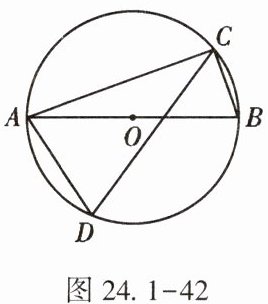 12. (★)如图 24.1-42,$AB为\odot O$的直径,点$C,D在\odot O$上,并且在直径$AB$的两侧,$\angle BAC = 20^{\circ}$,则$\angle D$的度数为______.