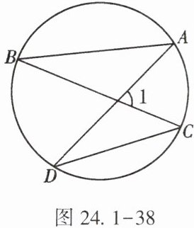 8. (★)如图 24.1-38,$A,B,C,D$是圆上的点,$\angle 1 = 68^{\circ}$,$\angle A = 40^{\circ}$,则$\angle D$的度数为