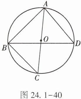 10. (★★)如图 24.1-40,$\triangle ABC是\odot O$的内接三角形,$AC是\odot O$的直径,$\angle C = 50^{\circ}$,$\angle ABC的平分线BD交\odot O于点D$,则$\angle BAD$的度数是【