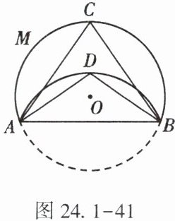 11. (★)如图 24.1-41,将$\odot O沿弦AB$折叠,点$C在\overset{\LARGE{\frown}}{AMB}$上,点$D在\overset{\LARGE{\frown}}{AB}$上,若$\angle ACB = 70^{\circ}$,则$\angle ADB$的度数为______