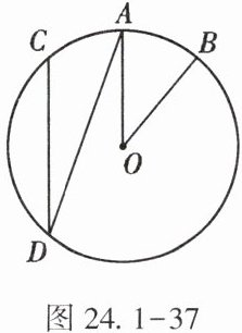 7. (★)如图 24.1-37,在$\odot O$中,$\overset{\LARGE{\frown}}{AB}= \overset{\LARGE{\frown}}{AC}$,$\angle AOB = 40^{\circ}$,则$\angle ADC$的度数是______