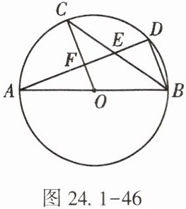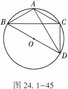 15. (★★)如图 24.1-45,等腰三角形$ABC的三个顶点在\odot O$上,已知$AB = AC$,$\angle ABC = 30^{\circ}$,$BD是\odot O$的直径,如果$CD = \frac{4\sqrt{3}}{3}$,则$AD$的长度为