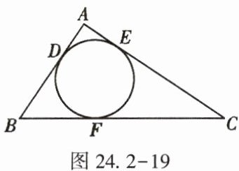 4. (★)(2023·青海)如图 24.2 - 19,⊙O与△ABC的边AB,AC,BC分别相切于点D,E,F,如果AB = 4,AC = 5,AD = 1,那么BC的长为