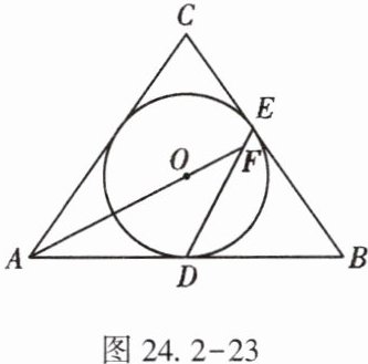 8. (★★)(2023·潜江)如图 24.2 - 23,在△ABC中,∠ACB = 70°,△ABC的内切圆⊙O与AB,BC分别相切于点D,E,连接DE,AO的延长线交DE于点F,则∠AFD的度数为