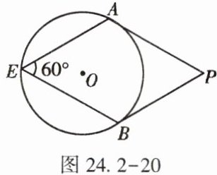 *5. (★)如图 24.2 - 20,PA,PB分别切⊙O于点A,B,点E是⊙O上一点,且∠AEB = 60°,则∠P的度数为