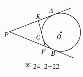 *7. (★★)如图 24.2 - 22,PA,PB分别与⊙O相切于点A,B,⊙O的切线EF分别交PA,PB于点E,F,切点C在$\overset{\frown}{AB}$上,若PA长为2,则△PEF的周长是