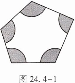 4. (★)某花园内有一块五边形的空地,如图 24.4 - 1,为了美化环境,现计划在以该五边形各顶点为圆心、$ 2 \, m $ 长为半径的扇形区域(阴影部分)种上花草,那么种上花草的扇形区域总面积是【