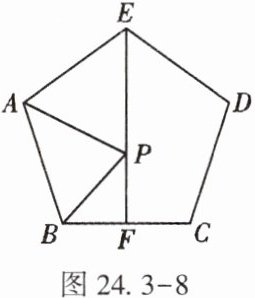 16. (★★★)如图24.3 - 8,已知正五边形ABCDE中,点F是BC的中点,P是线段EF上的动点,连接AP,BP,当$AP + BP$的值最小时,$\angle BPF$的度数为____
