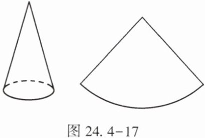 3. (★)如图 24.4 - 17,已知圆锥侧面展开图的扇形面积为 $ 65 cm^2 $,扇形的弧长为 $ 10 cm $,则圆锥母线长是【