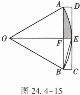 19. (★★)(2025·河南)我国魏晋时期数学家刘徽在为《九章算术》作注时,创立了“割圆术”。图 24.4 - 15 是研究“割圆术”时的一个图形,$ \overset{\frown}{AB} $ 所在圆的圆心为点 $ O $,四边形 $ ABCD $ 为矩形,边 $ CD $ 与 $ \odot O $ 相切于点 $ E $,连接 $ BE $,$ \angle ABE = 15^{\circ} $,连接 $ OE $ 交 $ AB $ 于点 $ F $。若 $ AB = 4 $,则图中阴影部分的面积为