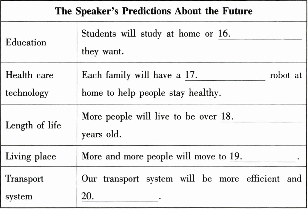 听下面一篇短文。根据短文内容写出下面表格中所缺的单词,每空限填一词或一个数字。短文读两遍。