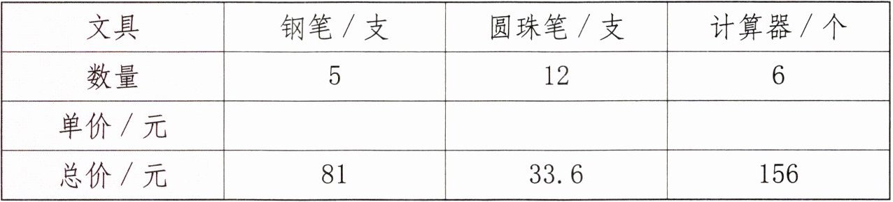 |文具|钢笔/支|圆珠笔/支|计算器/个|