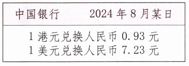 (2)陈叔叔准备到香港旅行,带 8000 元人民币,可以兑换多少港元?(得数保留两位小数。)