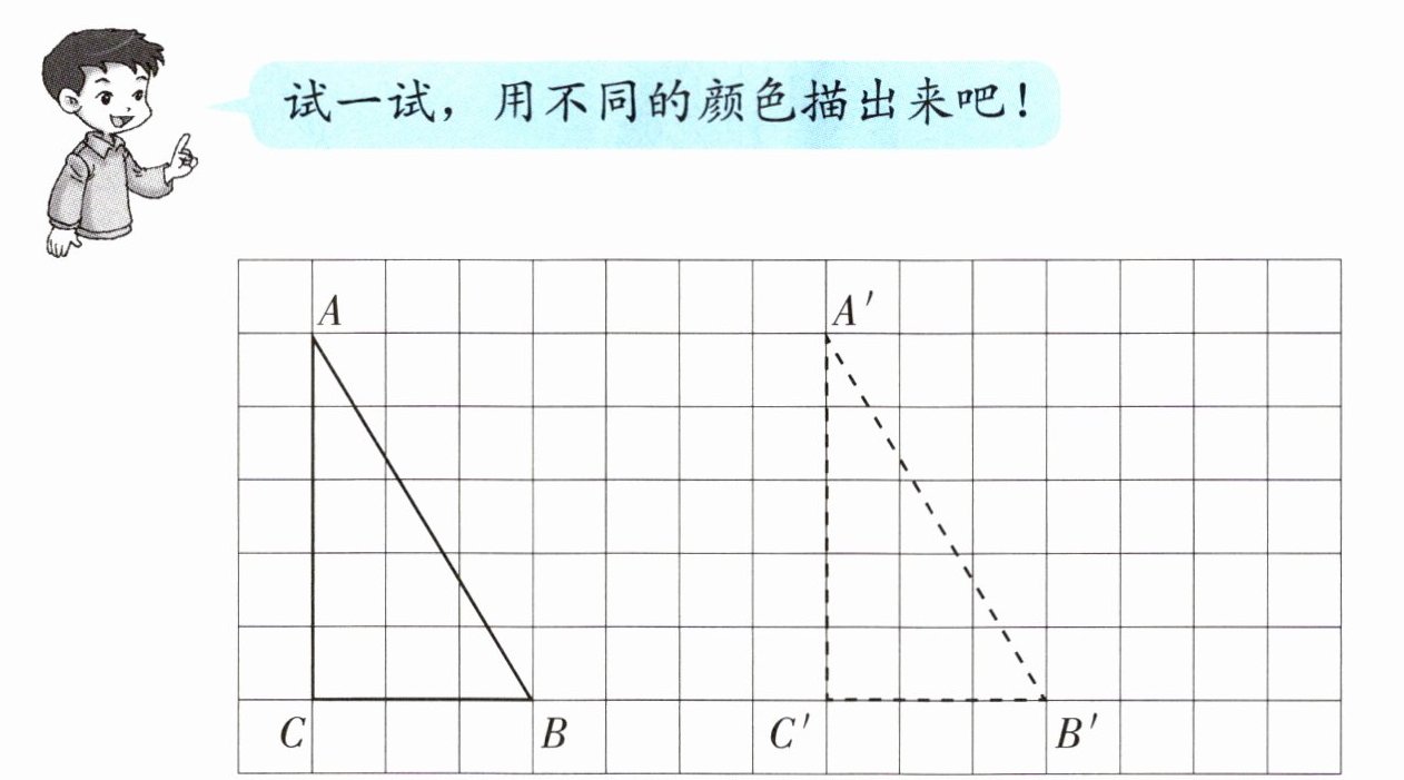 1. 三角形向右平移了7格,平移前后的图形中,哪些线段互相平行?