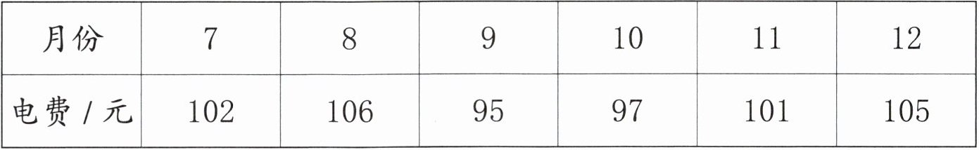 1. 观察各月电费:102、106、95、97、101、105,均接近100元。