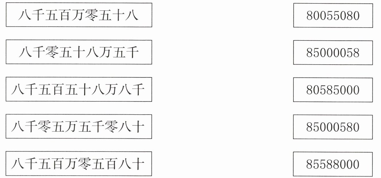 八千五百万零五十八-85000058,八千零五十八万五千-80585000,八千五百五十八万八千-85588000,八千零五万五千零八十-80055080,八千五百万零五百八十-85000580