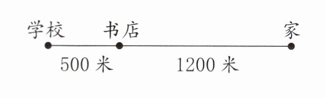 由图可知,从学校到书店距离 500 米,从书店到家距离 1200 米,那么学校到家的距离有两种计算方式: