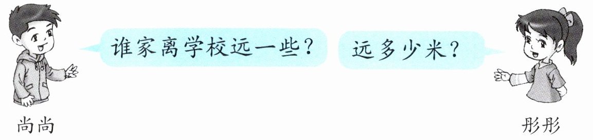 答:尚尚家离学校远一些,远75米。