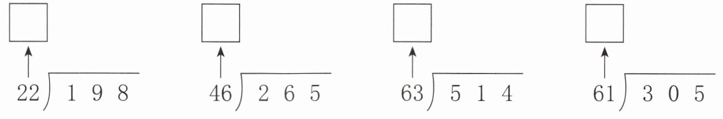 二、想一想,把除数看作几十来试商?在 $ □ $ 里填一填,算一算。