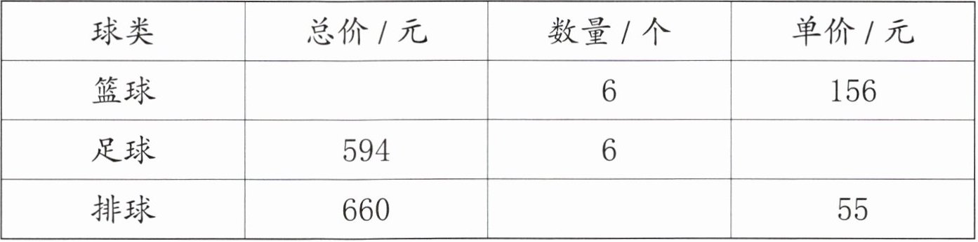 | 球类 | 总价/元 | 数量/个 | 单价/元 |