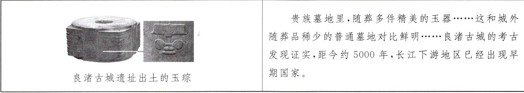 (1)史料分为第一手史料和第二手史料。材料一中“良渚古城遗址出土的玉琮”属于哪一类型的史料?(2分)