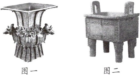 (2)写出材料二中的图一、图二所示青铜器的名称,并说说它们反映了我国哪一时期的灿烂文明。(3分)