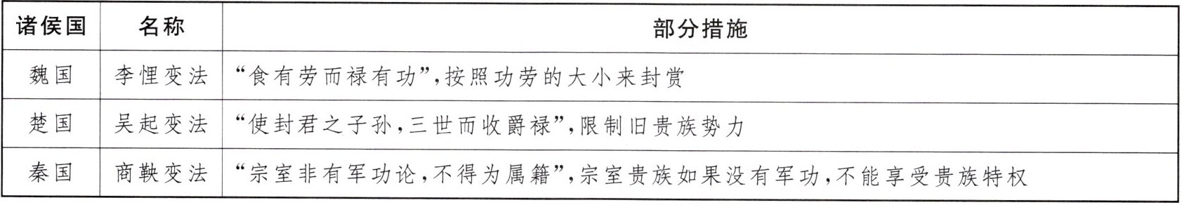 5. (2024·安徽中考)下表为战国时期一些诸侯国实行的变法。表中措施(
